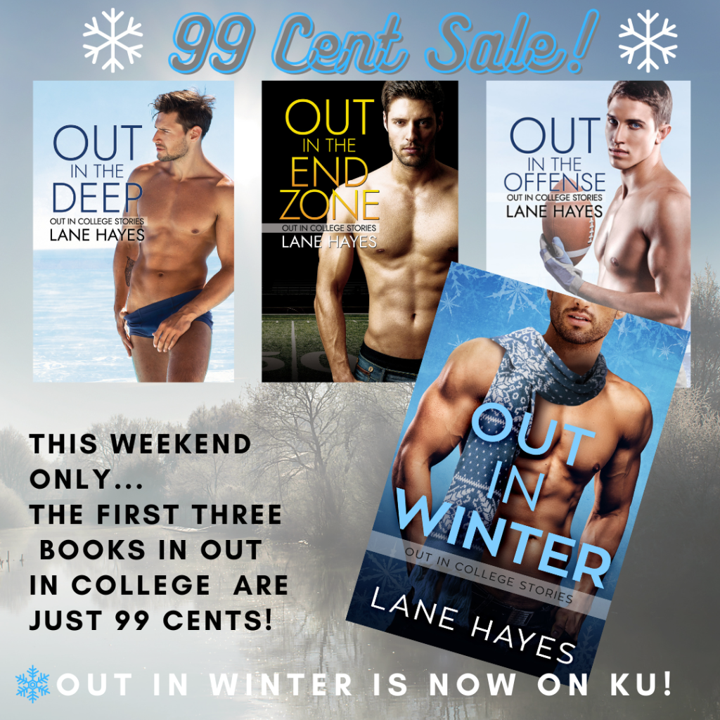 Woohoo! The first three books in Out in College are available for just 99 cents this holiday weekend (until Monday, January 18). If you haven’t had a chance to start this series, now is a great time! New adult, college sports romance, coming out, water polo (Speedos!), football…you get the idea. This sale includes Out in the Deep, Out in the End Zone, and Out in the Offense.